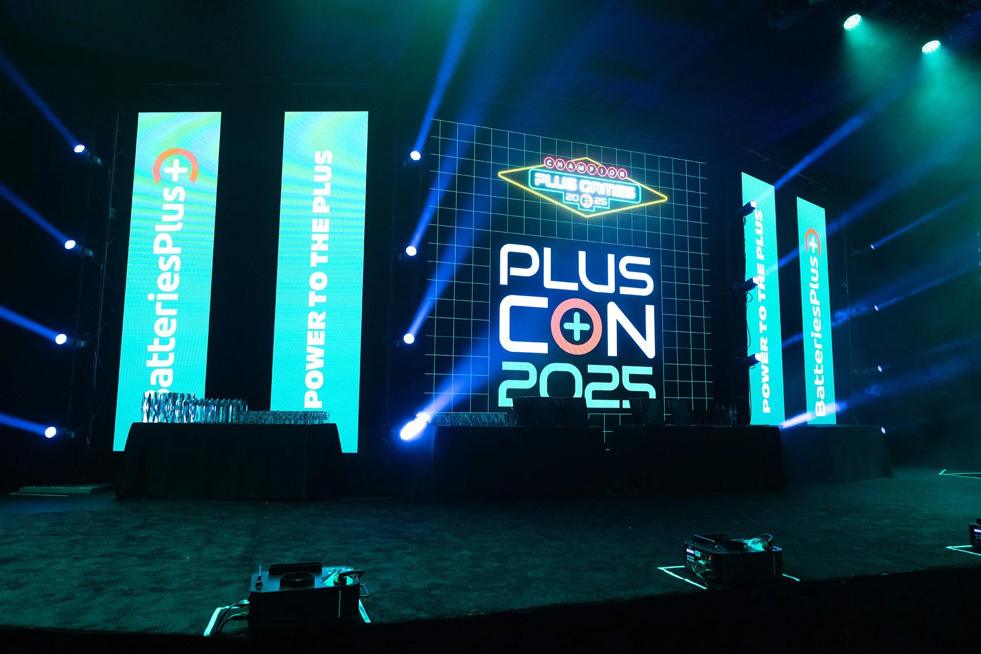 Hosted at The Cosmopolitan in Las Vegas, Pluscon is Batteries Plus’ premier franchising event—bringing together franchisees, vendors, and corporate leaders for a high-energy, brand-building experience. From bold signage and large-scale wall graphics to immersive displays, the visual identity of the event was designed to reflect the power, momentum, and future of the Batteries Plus brand.
